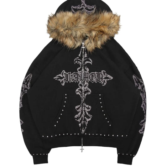 The Feral Faux Fur Studded Zip Rhinestone Hoodie brings a fearless mix of comfort, confidence,...