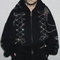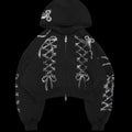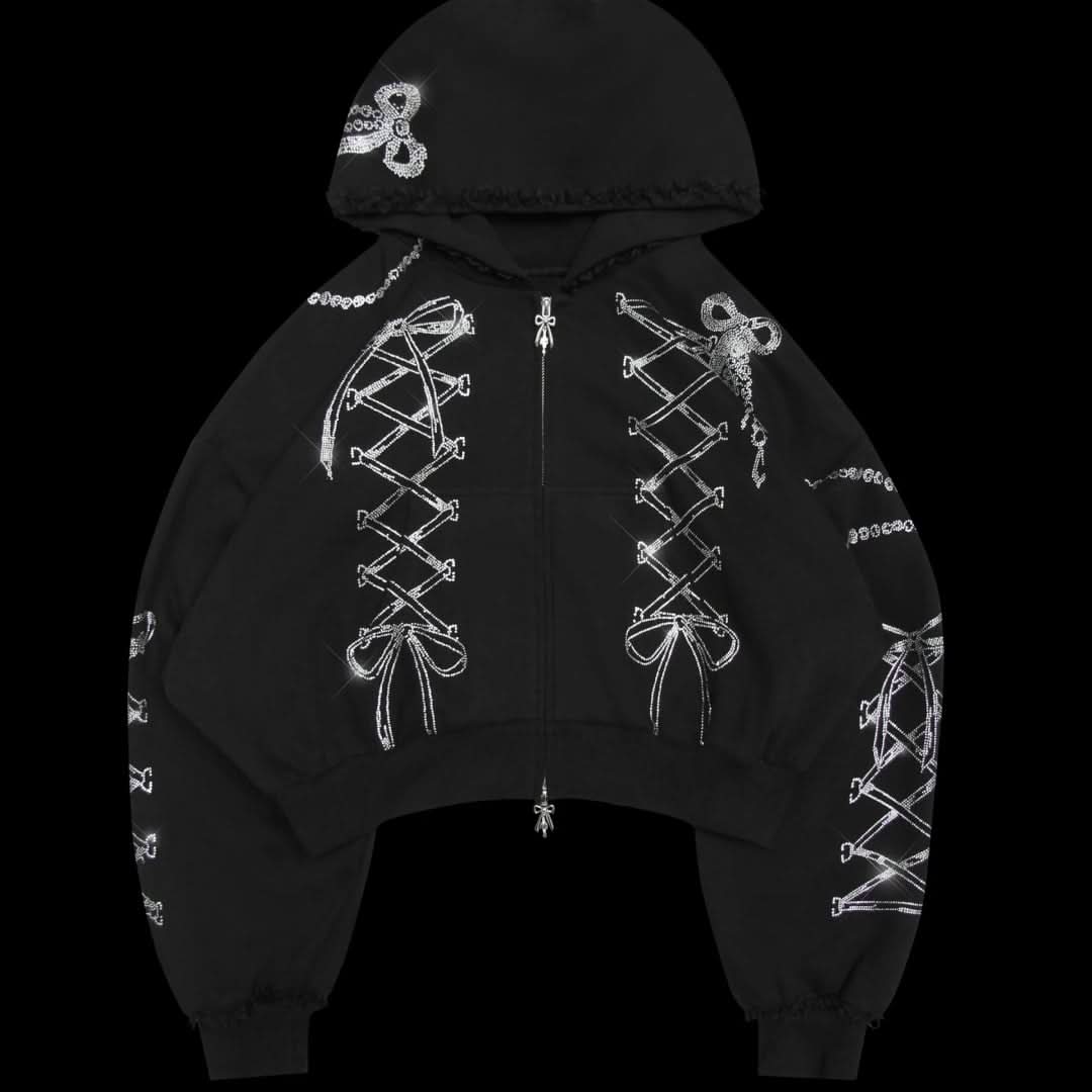 The Confessions Rhinestone Crop Zip Hoodie by TRB redefines street-luxury style with a premium, high-quality feel and a confident unisex edge. Crafted from soft, sustainable fabric, it features a sleek cropped fit, detailed lace accents, and radiant rhinestone embellishments that catch the light with every move. Perfect for pairing with jeans or layered over a statement tee, this hoodie blends comfort, attitude, and bold fashion energy for those who lead with style.