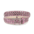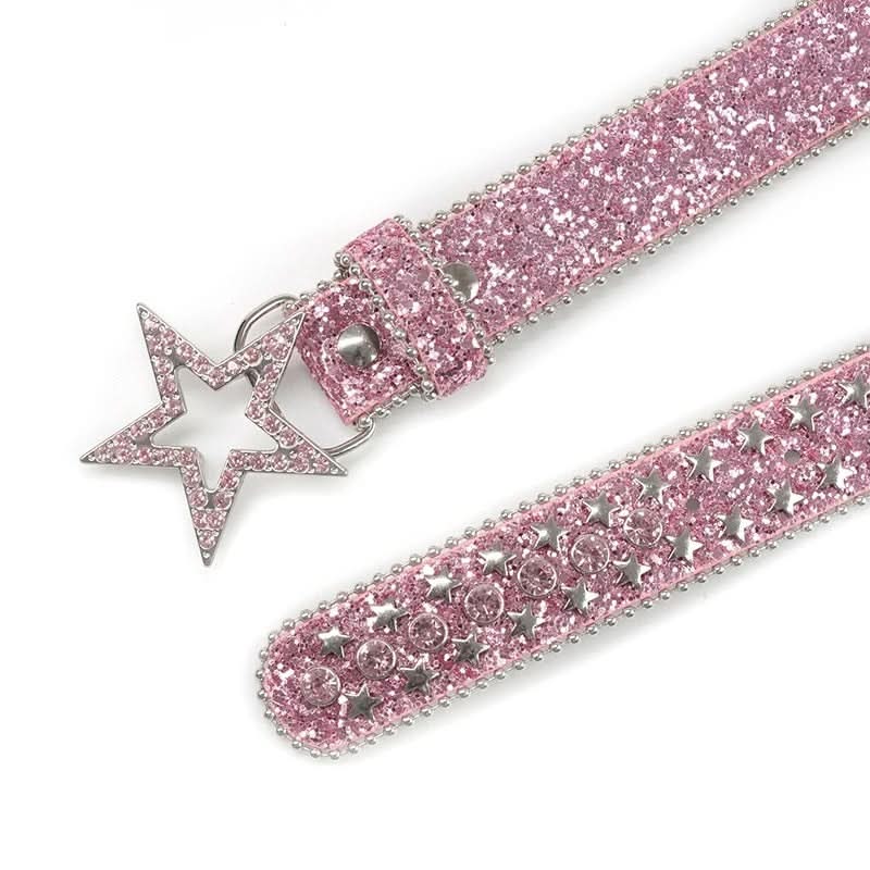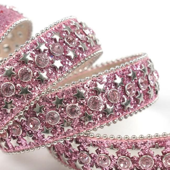 Pink Rhinestone Glitter Belt with Star Studs & Charm Buckle